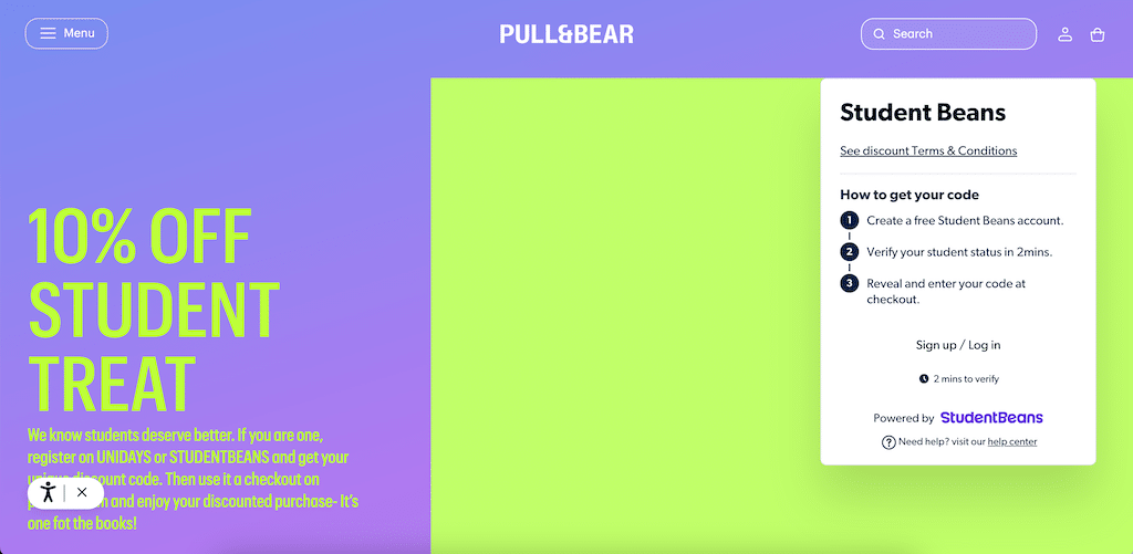 لدى PULL&BEAR مجموعة واسعة من أكواد الخصم التي تناسب احتياجات التسوق المختلفة. أحيانًا يكون السعر ثابتًا 10% للطلاب ، بينما في أوقات أخرى ستجد خصومات على منتجات المنافذ أو حتى شحن مجاني للطلبات التي تزيد عن 40 يورو .